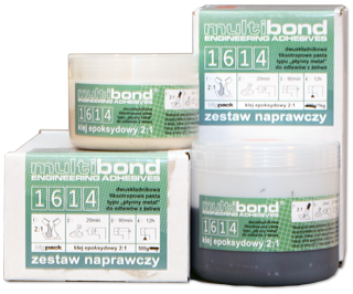 MULTIBOND-1614 jest dwuskładnikowym tiksotropowym, mocno zagęszczonym kompozytem epoksydowym w postaci pasty wypełnionej proszkami metali i wypełniaczami mineralnymi. MULTIBOND-1613 jest odmianą o mniejszym zagęszczeniu.