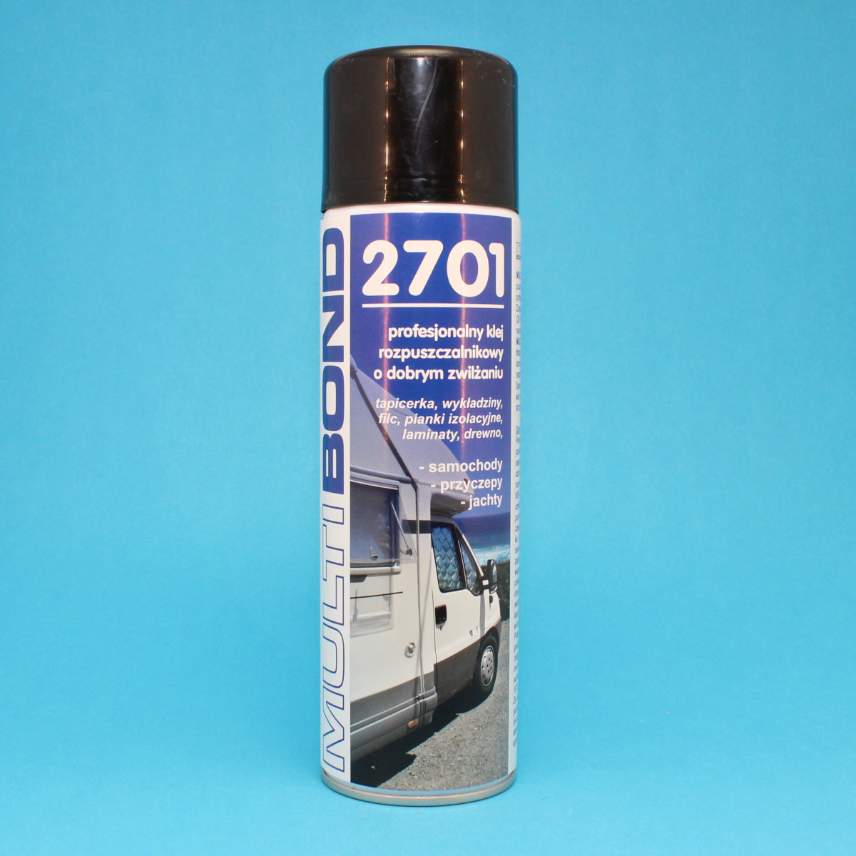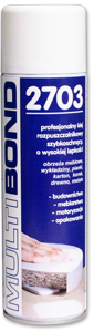 MULTIBOND-2702 to specjalny klej rozpuszczalnikowy w aerozolu do użytku profesjonalnego. Dzięki dużej zawartości cząstek stałych tworzy bardzo mocne spoiny, odporne na temperatury do +130oC, jest biały i bardzo gęsty. MULTIBOND-2702 dobrze skleja pianki, wykładziny, filc, skórę, drewno, korek, tworzywa, metale. Szczególnie polecany jest do laminatów HPL i obrzeży meblowych.